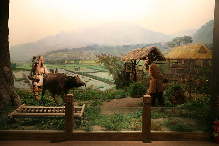 中华农业文明陈列 水田农业 唐宋水田耕作——耕、耙、耖场景