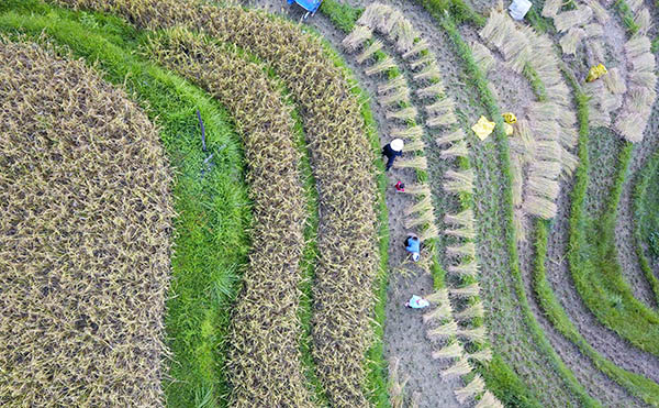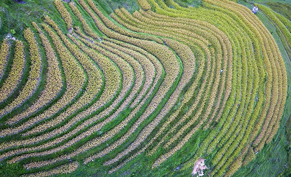 瞰丰收——苗寨梯田抢秋收