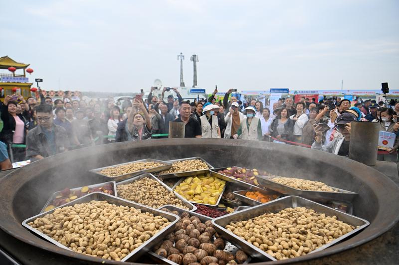 在天津市北辰区西堤头镇曙光水镇活动现场拍摄的为游客准备的五谷杂粮蒸食。