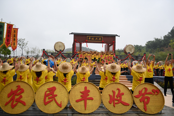 9月17日,人们在德清县庆祝首届“中国农民丰收节”活动开幕式上表演。