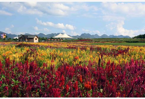 云南省曲靖市罗平县于2018年在区域内打造3000亩七彩花田,大力发展乡村特色旅游产业,吸引游客观景赏花。