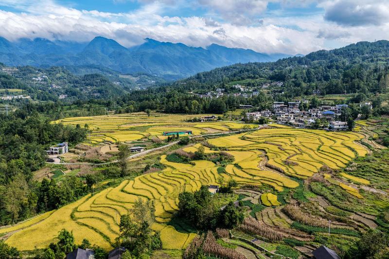 地处武陵山区腹地的重庆市黔江区五里镇水稻种植面积5300亩,是武陵山地区粮食主要产区之一。秋收时节,金黄色的水稻铺满山坡,稻农们利用晴好天气抢收稻谷,呈现出一派美丽的丰收画卷。 近年来,当地以“抓主粮、攻单产、增效益”为重点目标,在五里社区、甘溪村、胡家坝村、河南村建成水稻高产攻关示范片1000亩,实现水稻产业提质增效,推动主要粮食作物大面积单产提升。