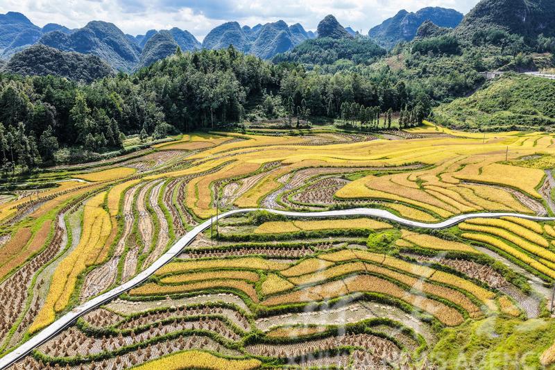 近日,贵州省黔南布依族苗族自治州长顺县12万亩水稻喜获丰收。农户们抢抓晴好天气,开镰收割,一派繁忙景象。